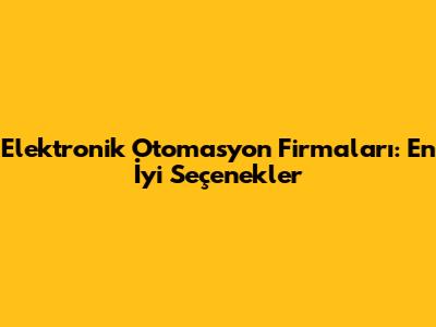 Elektronik Otomasyon Firmaları: En İyi Seçenekler