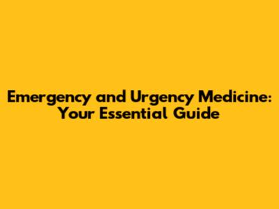 Emergency And Urgency Medicine: Your Essential Guide