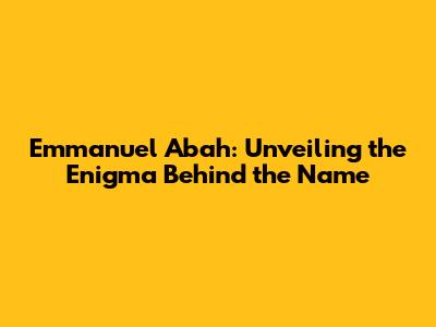 Emmanuel Abah: Unveiling The Enigma Behind The Name