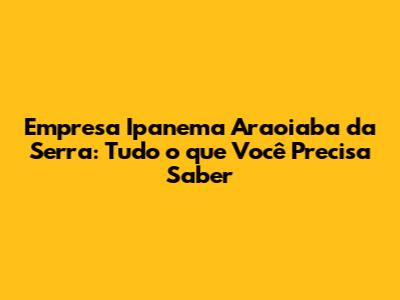 Empresa Ipanema Araoiaba da Serra, você já ouviu falar? Se você está planejando uma visita à charmosa cidade de Araoiaba da Serra, no interior de São Paulo, ou simplesmente busca informações sobre as empresas locais, este artigo é para você, amigo(a)! Vamos mergulhar no universo da Empresa Ipanema, explorando o que a torna especial, seus serviços, e por que ela pode ser uma excelente opção para suas necessidades. Prepare-se para descobrir tudo sobre essa empresa que tem conquistado espaço e reconhecimento na região. A Empresa Ipanema Araoiaba da Serra é mais do que um nome; é um sinônimo de qualidade e compromisso com seus clientes. Vamos começar?