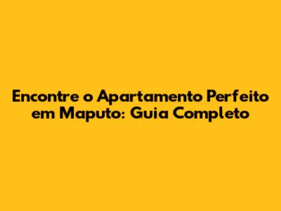 Encontre O Apartamento Perfeito Em Maputo: Guia Completo