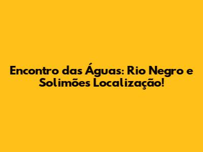Encontro Das Águas: Rio Negro E Solimões Localização!