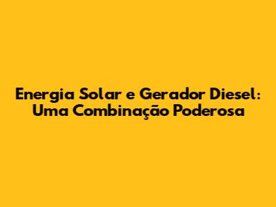 Energia Solar E Gerador Diesel: Uma Combinação Poderosa