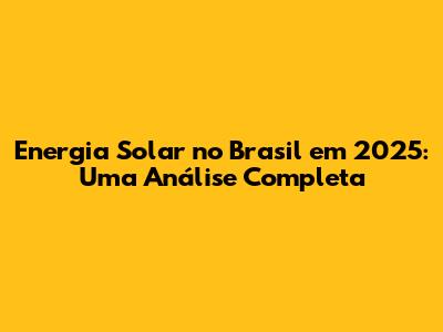 Energia Solar No Brasil Em 2025: Uma Análise Completa