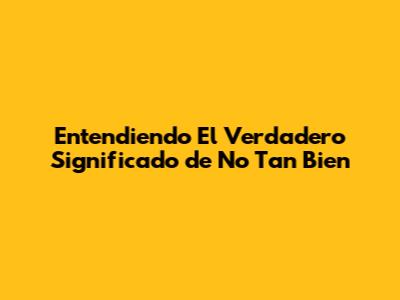 Entendiendo El Verdadero Significado De 'No Tan Bien'