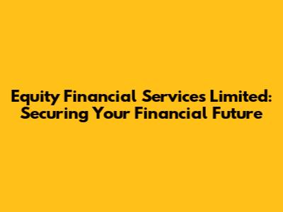 Hey guys! Let's dive into the world of Equity Financial Services Limited, a name you might have heard buzzing around, especially if you're keen on getting your financial ducks in a row. So, what exactly does Equity Financial Services Limited do? Why should you care? And how can they potentially help you achieve your financial dreams? Let's break it down in a way that's easy to digest, no complicated jargon, promise!