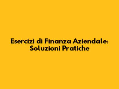 Dove Trovare Esercizi di Finanza Aziendale di QualitÃ