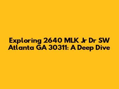 Hey everyone, let's dive into the details of 2640 MLK Jr Dr SW Atlanta GA 30311! This address is more than just a string of numbers and letters; it's a gateway to understanding a specific location within the vibrant city of Atlanta. We're going to explore what makes this spot unique, from its geographical context to its potential significance within the community. Whether you're curious about real estate, local businesses, or just want to learn more about a specific part of Atlanta, this exploration is for you. We'll break down the address, look at the surrounding area, and consider the various aspects that make this location noteworthy. So, buckle up, guys, and let's get started on this exciting journey! We'll cover everything, from the basic address breakdown to the neighborhood vibes, so you'll get a real feel for the place. Are you ready?