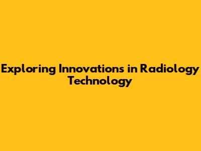 Exploring Innovations In Radiology Technology