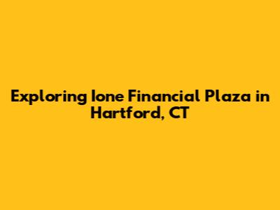 Hey there, finance enthusiasts and Hartford explorers! Ever heard of Ione Financial Plaza in Hartford, CT? Well, buckle up, because we're about to dive deep into this impressive landmark. We'll be uncovering its history, current state, and significance within the bustling city of Hartford. Let's start with a little background, shall we? This plaza is not just a collection of buildings; it's a statement, a hub for financial activity, and a testament to Hartford's enduring role in the insurance industry. Ready to explore?