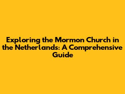 Exploring The Mormon Church In The Netherlands