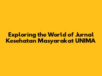 Exploring The World Of Jurnal Kesehatan Masyarakat UNIMA