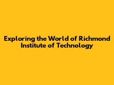 Exploring The World Of Richmond Institute Of Technology