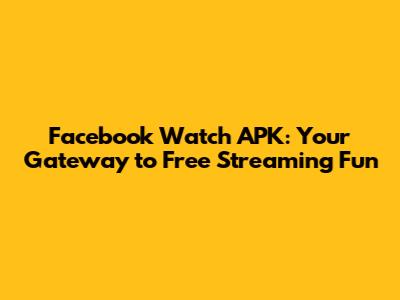Facebook Watch APK: Your Guide To Streaming Entertainment