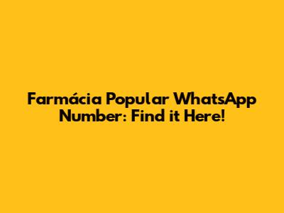 Farmácia Popular WhatsApp Number: Find It Here!