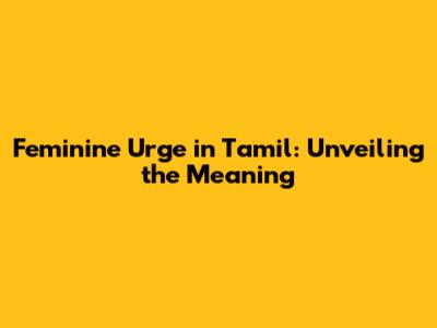 Feminine Urge In Tamil: Exploring Its Meaning & Nuances