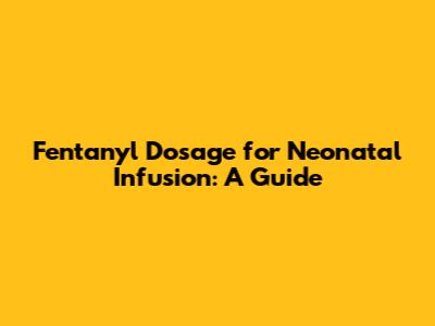 Fentanyl Dosage For Neonatal Infusion: A Guide
