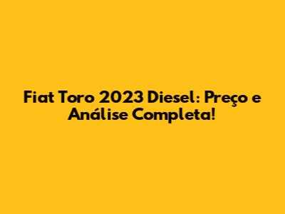 Fiat Toro 2023 Diesel: Preço E Análise Completa!