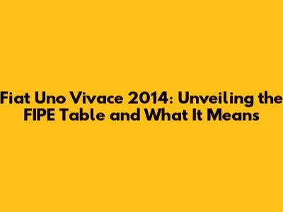 Decoding the Fiat Uno Vivace 2014 FIPE Table: Key Factors to Consider
