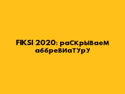 FIKSI 2020: Раскрываем Аббревиатуру