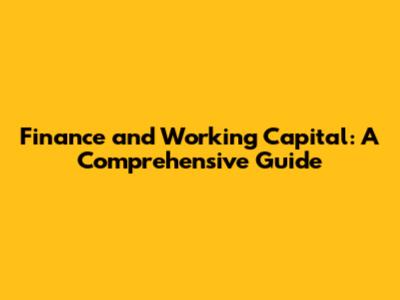 Finance And Working Capital: A Comprehensive Guide