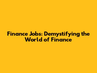 Finance Jobs: Demystifying The World Of Finance