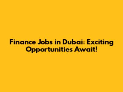 Finance Jobs In Dubai: Exciting Opportunities Await!