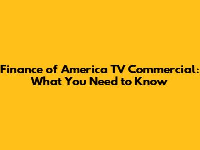 Finance Of America TV Commercial: What You Need To Know