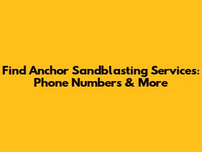 Find Anchor Sandblasting Services: Phone Numbers & More