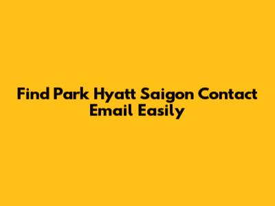 Find Park Hyatt Saigon Contact Email Easily
