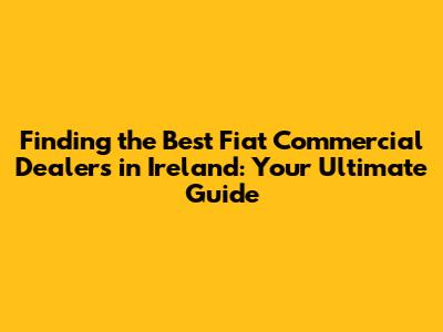 Hey guys! If you're on the hunt for a reliable Fiat commercial vehicle in Ireland, you've come to the right place. Choosing the right dealer can make a huge difference in your buying experience, not to mention the ongoing support you receive. This guide will walk you through everything you need to know to find the best Fiat commercial dealers in Ireland, ensuring you get the perfect vehicle for your needs. We'll dive into what to look for, what questions to ask, and how to compare dealers to make the most informed decision. So, buckle up, and let's get started!