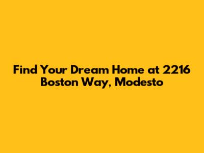 Hey everyone! Today, we're diving into a seriously cool property that's hitting the market at 2216 Boston Way, Modesto, CA 95355. If you've been on the hunt for a new place to call home in the Modesto area, you're going to want to pay close attention. This isn't just another house; it's a potential dream come true, nestled in a neighborhood that offers that perfect blend of community feel and convenient living. We're talking about a place where you can really put down roots, raise a family, or just enjoy your own slice of Modesto paradise.
