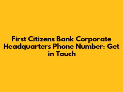 Why You Might Need the First Citizens Bank Corporate Headquarters Phone Number