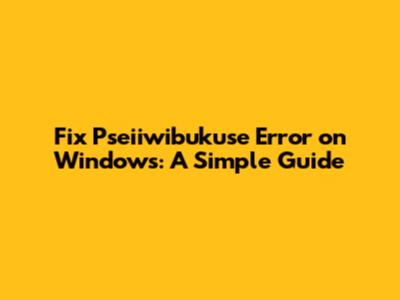 Fix Pseiiwibukuse Error On Windows: A Simple Guide