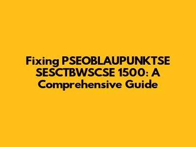 Fixing PSEOBLAUPUNKTSE SESCTBWSCSE 1500: A Comprehensive Guide