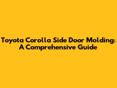 Fixing Your Toyota Corolla Side Door Molding: A Complete Guide