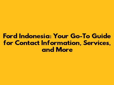 Ford Indonesia: Contact Info, Services & More