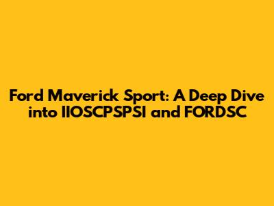 Alright guys, let's dive deep into the Ford Maverick Sport, focusing on those head-scratching terms: IIOSCPSPSI and FORDSC. If you're like most Maverick Sport owners (or soon-to-be owners), you've probably stumbled across these acronyms and wondered, "What in the world do they mean?" Don't worry; you're not alone! This article will break it down in plain English, so you can understand what these terms refer to and how they might impact your Maverick Sport ownership experience. We'll explore the intricacies of these systems, offering insights into their functionality, potential issues, and maintenance considerations.