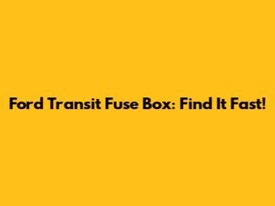 Ford Transit Fuse Box: Find It Fast!