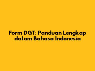 Form DGT: Panduan Lengkap Dalam Bahasa Indonesia