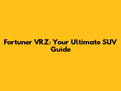 Fortuner VRZ: Your Ultimate SUV Guide