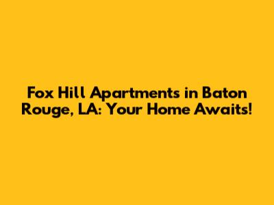 Hey guys! Are you on the hunt for the perfect apartment in Baton Rouge, LA? Look no further! We're diving deep into Fox Hill Apartments, a community that might just be the answer to your housing dreams. From location and amenities to floor plans and nearby attractions, we'll cover everything you need to know to make an informed decision. So, buckle up and let's get started!