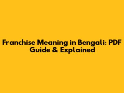 Franchise Meaning In Bengali: PDF Guide & Explained