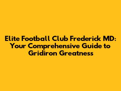 Frederick MD's Top Football Club: Your Ultimate Guide