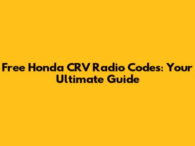 Free Honda CRV Radio Codes: Get Yours Now!
