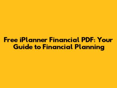 Free IPlanner Financial PDF: Your Guide To Financial Planning