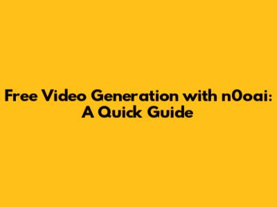 Free Video Generation With N0oai: A Quick Guide