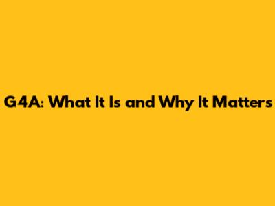G4A: What It Is And Why It Matters