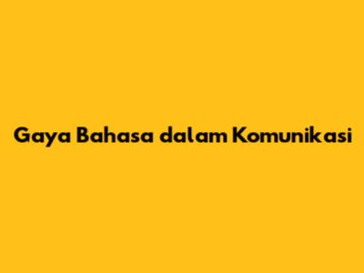 Gaya Bahasa Dalam Komunikasi