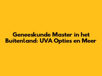 Geneeskunde Master In Het Buitenland: UVA Opties En Meer